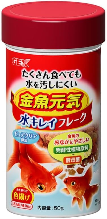 初めての金魚にやさしい発酵性植物性原料+酵母菌配合のフレークフード 金魚のおなかの健康と水汚れに配慮したフレークフード。