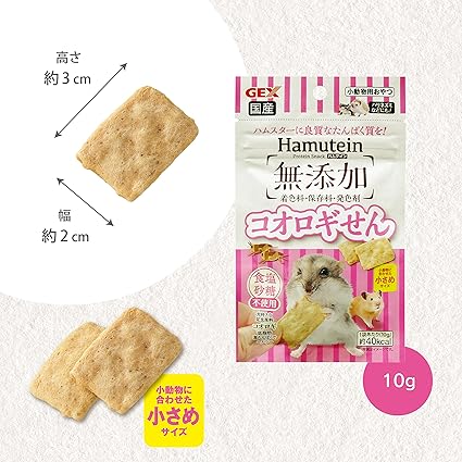 米粉をベースに嗜好性の高いコオロギ粉末を配合し、さくさくに焼き上げました。着色料・保存料・発色剤無添加、また食塩・砂糖不使用で安心して与えられます。