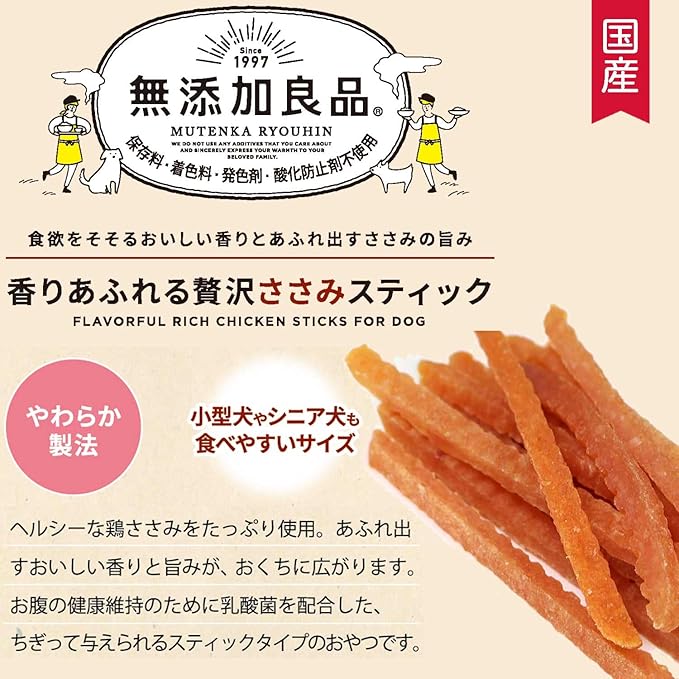 ●やわらかくちぎって与えられるスティックタイプ。与える量を調整しやすくごほうびにも最適。●乳酸菌を配合し愛犬のお腹の健康維持にも配慮。