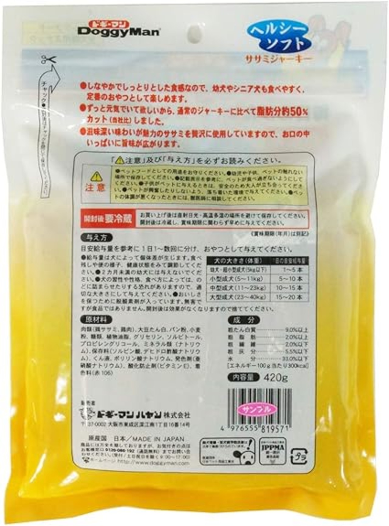 ドギーマン 犬用おやつ ヘルシーソフトササミジャーキー 420g