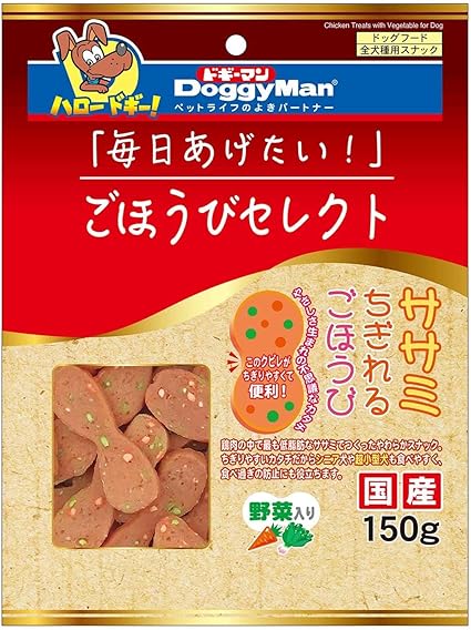 ササミを使ったやわらかでおいしいごほうびスナック。野菜入り。
