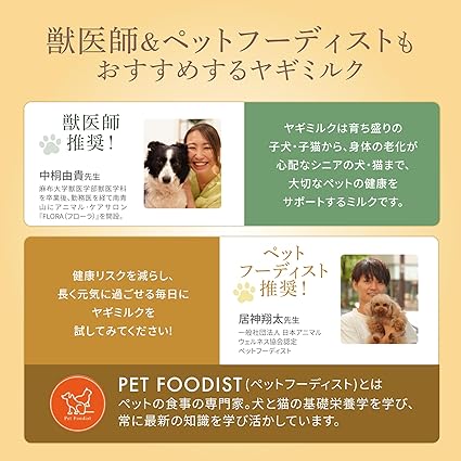 【食いつき抜群に?!みんなだいすきヤギミルク!】多くの飼い主さんの困りごと。それは、大切なペットの水分補給やごはんの好き嫌い。もっとゴクゴク飲んでほしい。もっとモリモリ食べてほしい。そんな声から生まれたヤギミルクは、完全無添加・栄養満点なだけでなく、胃腸にやさしく・乳アレルギーが起こりにくい5つ星のヤギミルクです。