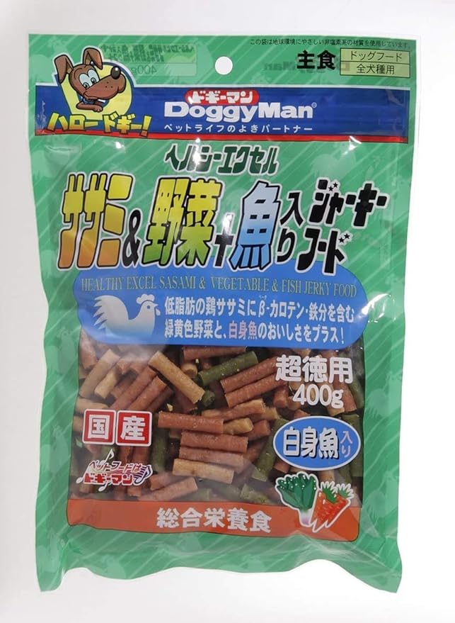 ドギーマン 犬用おやつ ヘルシーエクセル ササミ&野菜+魚入りジャーキーフード チキン 400グラム (x 1) | Pettopoint