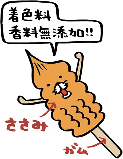 着色料・香料無添加。 農林水産省認定 鳥加熱処理工場製造。 便利な個包装。 ササミ生地をガムにコーティング。 原産国:中国
