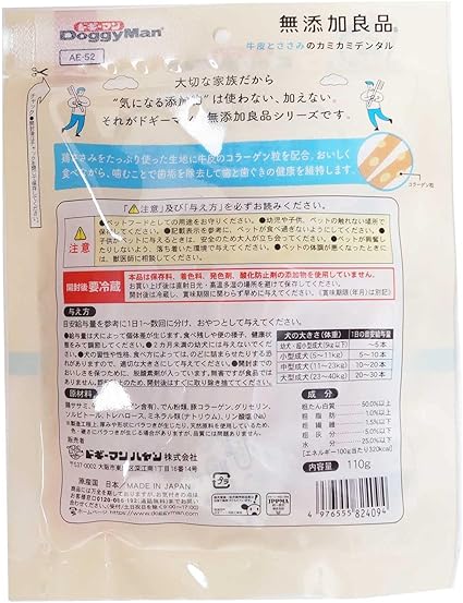 ドギーマン 無添加良品 牛皮とささみのカミカミデンタル110g