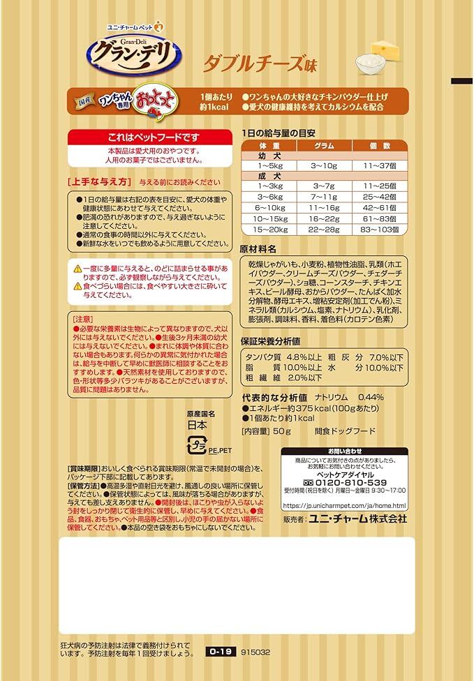 グラン・デリ グランデリ 犬用 おやつ ワンちゃん専用おっとっと ダブルチーズ味 50g 国産 ドッグフード ユニチャーム