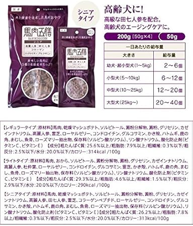 馬肉五膳 犬用おやつ シニア犬用 50グラム (x 1) | Pettopoint