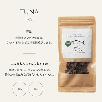 国産無添加の犬用マグロおやつです。小型犬や老犬にピッタリ。ひとくちサイズの犬用マグロおやつなので、安心して食べられます。小型犬のしつけやご褒美に。犬用おやつは国産・無添加が安心。