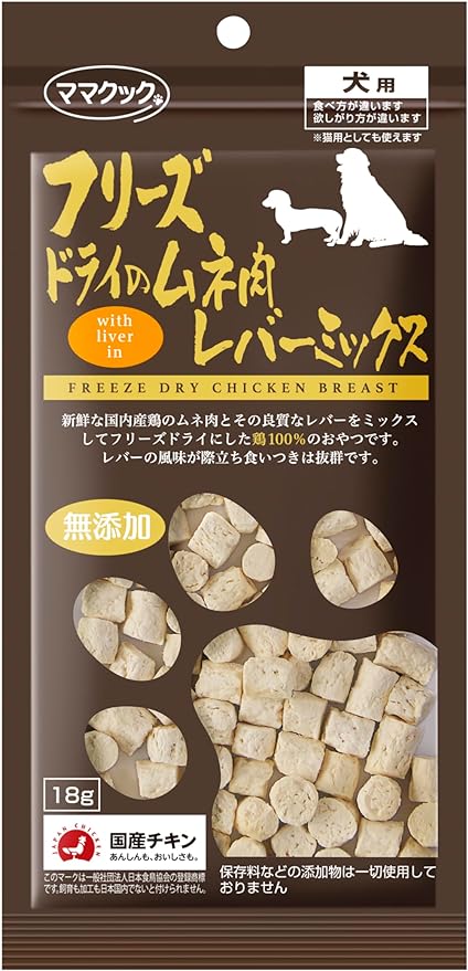 ママクック フリーズドライのムネ肉 レバーミックス 犬用 18g
