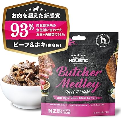 【厳選したビーフと白身魚】 アブソルート 犬 おやつ 全年齢 エアドライ ジャーキー ブッチャーメドレー お肉・お魚類93%使用 Absolute [ビーフ&ホキ 100g] | Pettopoint