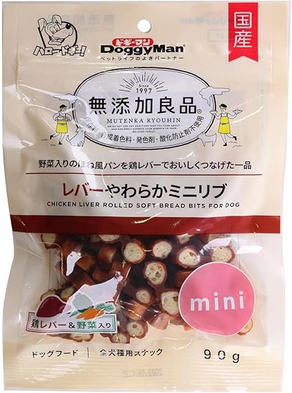 ●野菜入りのパン生地を鶏レバー入りペーストで包んでつないで焼いたごほうびスナック。