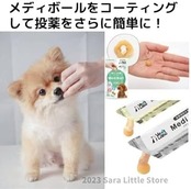 姉妹品の投薬補助おやつ「メディボール」でお薬を包み、さらにメディジャムを塗ることで、二重にお薬をコーティングし、味を変えて飽きずに投薬をアシストできます。