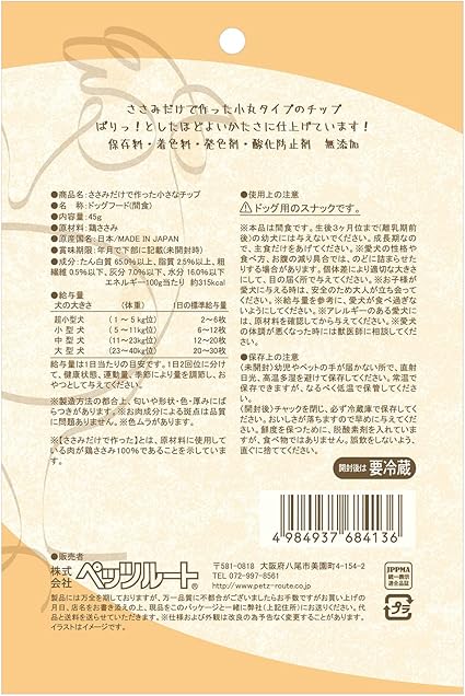 ペッツルート (Petz Route)ささみだけで作った 小さなチップ 45g