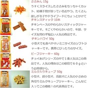 ★ヤギちゃん★ ■■終売■■ ★かぼちゃん★ 日本のカボチャの美味しさを日本のわんちゃんに知ってもらおうと作ったかぼちゃんです。ちぎらなくていいサイズにカットしてあります。見える黒い粒はカボチャの皮です。 ★チキンハワイ★ 素材の旨みを味わえる500円玉大のコイン型おやつ。小型犬でもパリパリ食べられるハードタイプです。