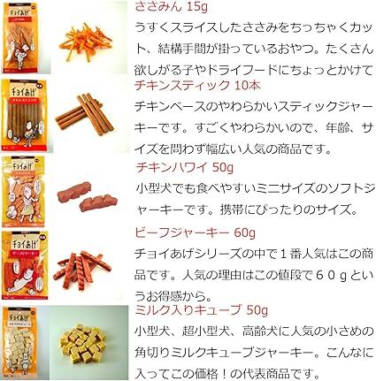 ★豆乳ビスケット★ 国産の豆乳ビスケットをこれでもか!という程、パンパンに詰めています。ビスケット派のワンちゃんにはたまらない逸品です。 ★ビーフジャーキー★ チョイあげシリーズ