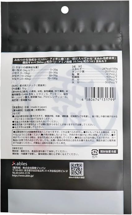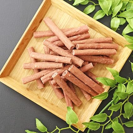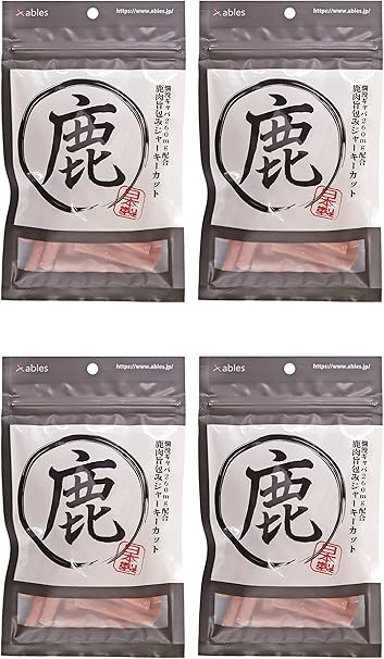 原材料:鹿肉、小麦粉、米粉、食物繊維、加工澱粉、米糠発酵物(GABA含有)、ビタミンE、グリセリン、保存料(ソルビン酸K、亜硫酸Na)、プロピレングリコール、発色剤(亜硝酸Na)