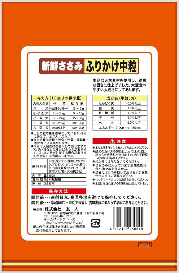 友人 新鮮ささみ ふりかけ中粒 160g