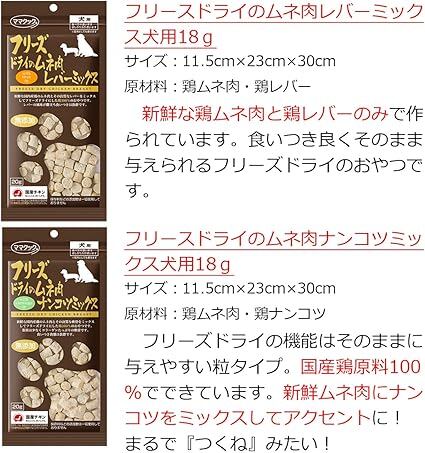ママクック 犬 フリーズドライ おやつ 無添加 国産 人気売れ筋 ムネ肉ミックス 3種 (レバーミックス 18g, ナンコツミックス 18g, スナギモミックス 18g) + SLS限定ペット用オーガニックコットン | Pettopoint
