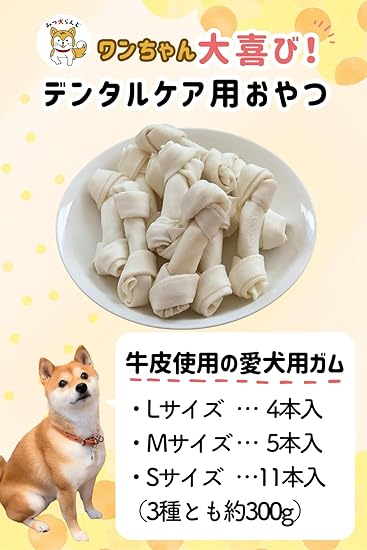愛犬用ガム 噛むことにより歯石の沈着を抑えます コラーゲンとして牛皮を使用 手作りのため形状やサイズ、色に一部ばらつきがございます