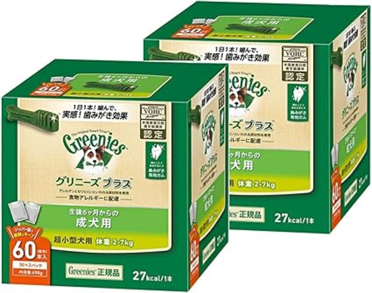 公認店 グリニーズプラス 成犬用 超小型犬用 2-7kg 60本入×2個セット ボックス オーラルケア