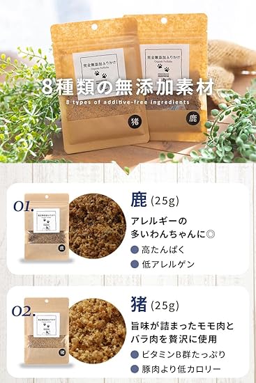 【原産地】奈良県 【内容量】25g 【与え方】わんちゃんのフードにふりかけ、混ぜて与えてください。 【目安】一食につきスプーン一杯程度