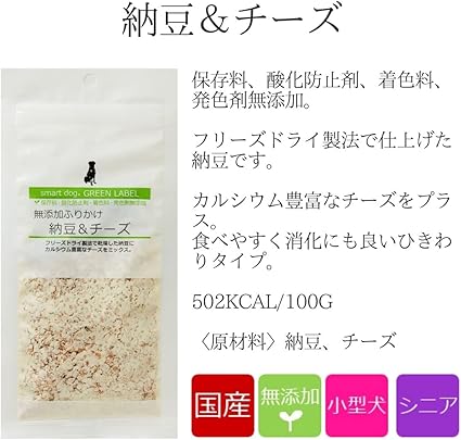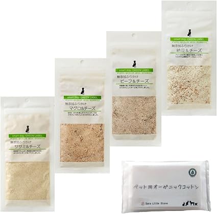 スマートドッグ グリーンラベル 犬 ふりかけ 無添加 チーズセット (ササミ&チーズ 45g, マグロ&チーズ 45g, ビーフ&チーズ 30g, 納豆&チーズ 30g) + SLS限定ペット用オーガニックコットン アニマライフ ペットケア おやつ | Pettopoint