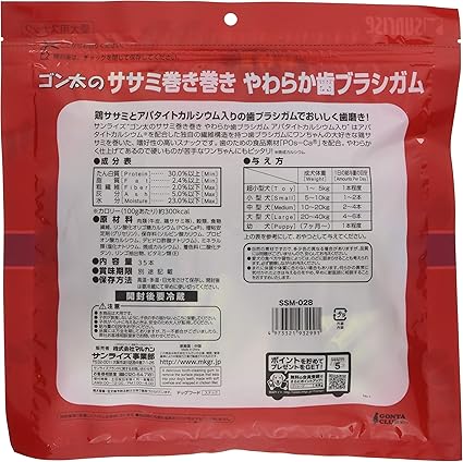 栄養成分:たん白質30.0%以上、脂質2.4%以上、粗繊維2.0%以下、灰分5.0%以下、水分23.0%以下
