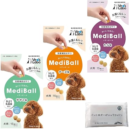 メディボールはお薬が苦手なワンちゃんのために獣医師と共同で開発した投薬補助用のおやつです。