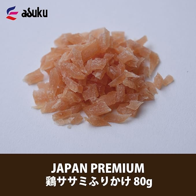 原材料:鶏ササミ・ソルビトール・食塩・澱粉・水あめ・粉末卵白・植物油・グリセリン・プロピレングリコール・酸化防止剤(亜硫酸Na・エリソルビン酸Na・BHA)・リン酸塩Na・調味料・保存料(水酸化Ca)・発色剤(亜硝酸Na)・増粘多糖類(アラビアガム・グァーガム)・エタノール・クエン酸