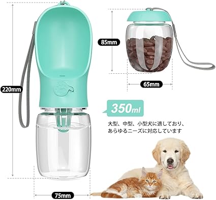 【給水や給餌2 in 1デザイン】このボトルは水を入れるだけでなく、ドッグフードを持ち運ぶこともでき、いつでもどこでも食べたり飲んだりできます。外出時にペットが外で空腹や渇きを心配する必要がなく、他の給水器より便利です。水と餌は1台に分けて保管することができます。1台2役ですがコンパクトです、それに、ボトルにストラップが付いており、持ち運びに便利です、犬と一緒に散歩、旅行するのに最適です。