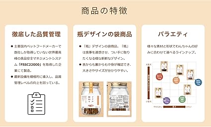 【成分】たんぱく質: 61.0% 以上、粗繊維: 1.5% 以下、水分: 25.0%以下、脂質: 1.0% 以上、灰分: 7.0% 以下、エネルギー:250Kcal/100g