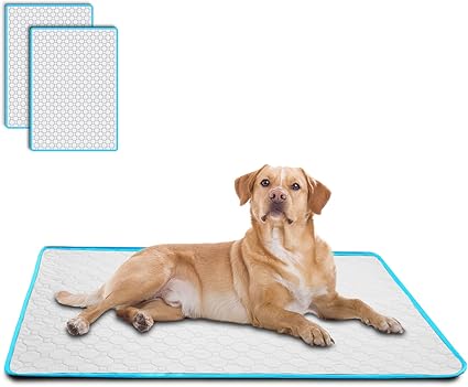 TiTiSNUGY ペット用おしっこマット ペットマット トイレシート 介護 【健康状態の観察】 2枚セット 100 x 70cm 下敷きマット 四重構造 防水 漏れ防止 速乾 消臭 滑り止め 中型 大型 犬・猫 犬用 おしっこパッド 丸ごと洗える 繰り返し利用可能 エコ 制菌 超吸収 ペットシーツ ブルーエッジデザイン 四季通用(オフホワイト) | Pettopoint