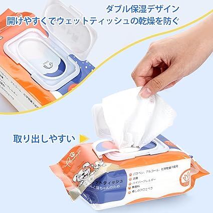 【なめても安心】:PAWNAXペットウェットティッシュはノンアルコール、パラベンフリー、純水99%、無香料タイプです。天然アロエエキス、カミツレエキス、ビタミンEが含まれて、すべて天然成分で、なめられても心配ないです。