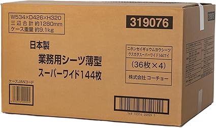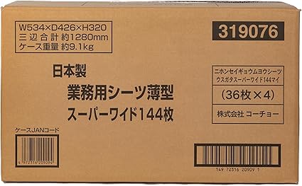 コーチョー 日本製業務用シーツ 薄型 ペット用 スーパーワイド 144枚入