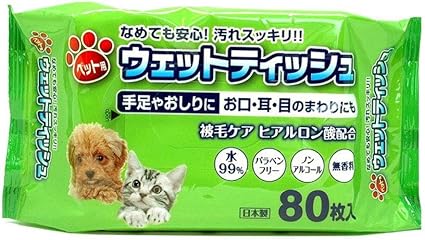 なめても安心!汚れスッキリ!! 手足やおしりに お口・耳・目の周りにも! 被毛ケア ヒアルロン酸配合 水99% パラベンフリー ノンアルコール 無香料 日本製