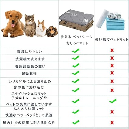 【強い実用性&幅広い用途】室内の床、ソファ、ペット用トイレ、ペットベッド、犬小屋、キャリーバッグ、ペットの囲い、ペットケージはもちろん、旅行時の車内でも使用できます。家具、敷物、ペットベッド、犬小屋などをペットの毛や汚れから守ります。対象:小型犬~大型犬、子犬~高齢犬、介護犬、猫、うさぎ、モルモットなどの動物。病気ペット、失禁高齢犬、子犬の授乳、術後介護、旅行などに最適です。