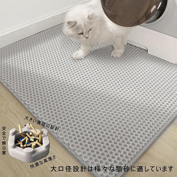 【隠蔵式二重構造 & 大きな直径のグリッド設計】 大きい直径のグリッド状と二重構造の設計は、多くの猫砂に適用です。猫の足に付いた砂が落ちるとすぐマットの間に挟まって、あちこちにならないように清潔な室内環境を保ち続けます。