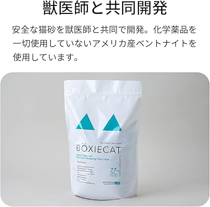 飛び散らない、におわない。ワンランク上のプレミアムな猫砂です。化学製品を一切使用していないアメリカ産ベントナイトを使用。猫に害を与えず、なおかつ好みやすい鉱物系の砂をアメリカの獣医師と現地メーカーが共同開発しました。”BOXIE CAT グリーン”はペットの排泄に反応してほのかに香る微香料タイプです。