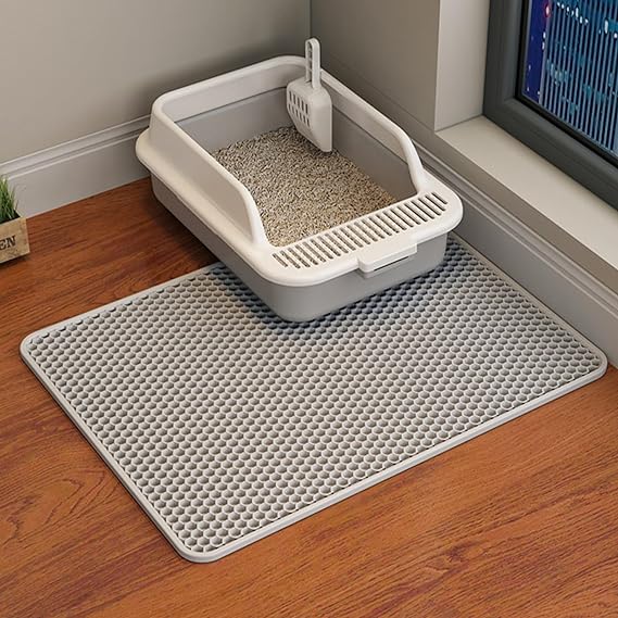 heatcozy 猫用トイレマット 猫砂取りマット 60x45CM/75x55CM/90x60CM/116x66CM 複数サイズ 猫マット 猫砂マット 飛び散り防止マット 掃除簡単 EVA 滑り止め 防水 防カビ 臭さ防止 マッサージ式 高耐久 (60x45CM, グレー) | Pettopoint