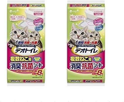 【2個セット】ユニ・チャーム デオトイレ 1週間 消臭・抗菌 複数ねこ用シート 8枚入り×2袋