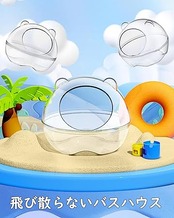 【バスハウスの適用対象】ハムスターバスルームドワーフハムスター、ジャンガリアンなど小型ハムスターの砂浴び用おふろ。砂地に巣穴などを掘って生息している小動物に最適。透明色なので中の様子が確認しやすい!ハムスター、チンチラ、モルモット、リス、金糸熊など小動物に適用です。