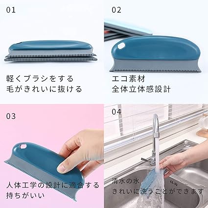 RICISUNG 抜け毛取りブラシ 猫 犬 ペット毛 掃除ブラシ ペットコーム 布団 カーペットなどを掃除 ブルー ソファー ベッド Ocean blue