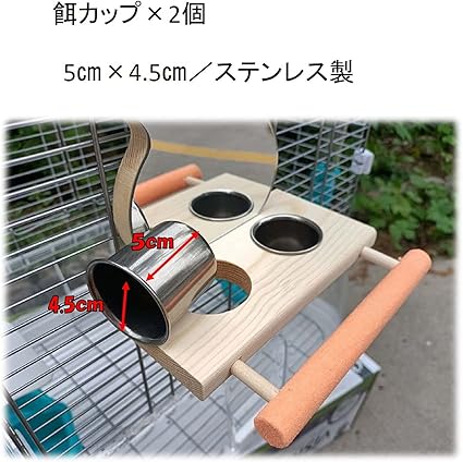ステンレス 餌入れ 餌台 鏡 鳥スタンド 止まり木 餌台 鳥かご 餌 エサ 台 インコ オウム バードトイ 玩具 ミラー付き 木製餌台