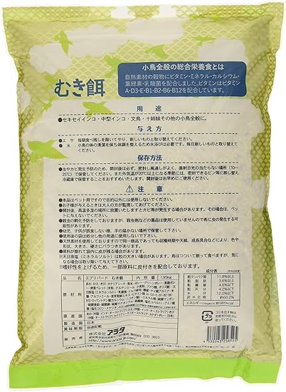 栄養成分:粗タンパク質11.8%以上、粗脂肪3.6%以上、粗繊維4.6%以下、粗灰分4.2%以下、水分12.1%以下