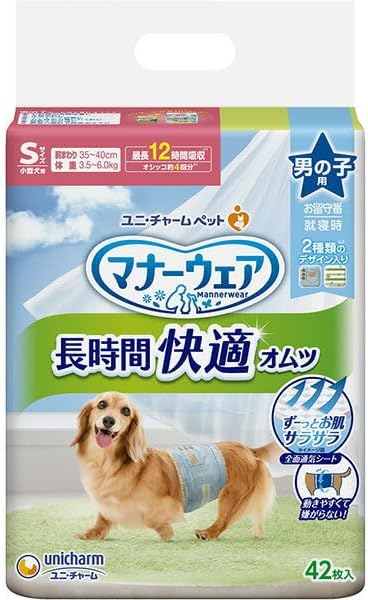 【セット販売】マナーウェア 長時間快適オムツ 男の子用 小型犬用 Sサイズ 42枚×2コ
