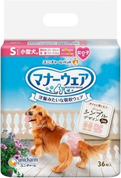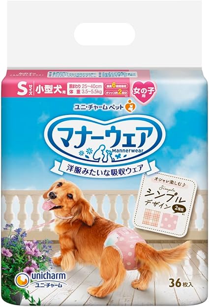 マナーウェア 犬用 おむつ 女の子用 Sサイズ 小型犬用 モーヴピンクドット・ピンクチェック 288枚(36枚×8)おしっこ 生理 介護用 ペット用品 ユニチャーム[ケース品] | Pettopoint