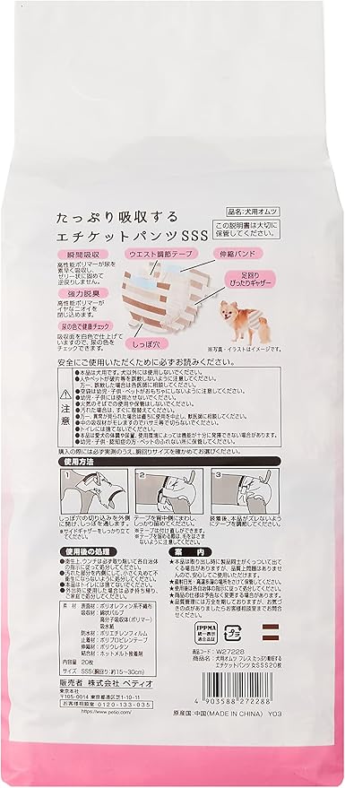 ペティオ (Petio) 犬用オムツ フレス たっぷり吸収するエチケットパンツ 女の子用 SSS20枚 ケース販売