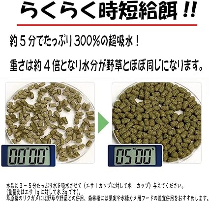 水分は、摂取量が少ないと尿石発生の一因となるといわれるほど重要です。本品は水分を多量に吸水保持することができ、爬虫類の口にこびりつきにくく、食べやすいスポンジ物性です。