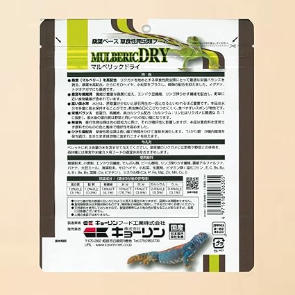 リクガメを始めとする草食性爬虫類にとって最適な栄養バランスを誇る、桑葉を高配合。さらにモロヘイヤ、小松菜をプラスし、穀類の配合を抑えました。イグアナ、トゲオアガマにも最適です。