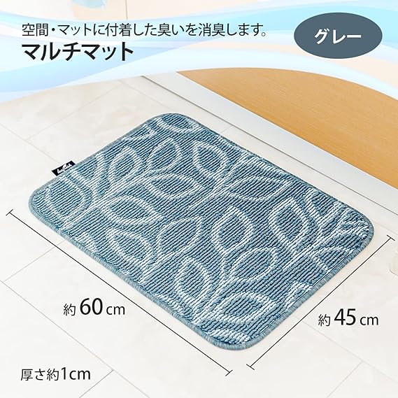山崎産業(Yamazaki Sangyo) マルチマット 足元マット 消臭マット 消臭 滑り止め 洗濯可 リーフレッシュ スクエア グレー 幅60×奥行45×高さ1cm 196210 | Pettopoint